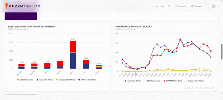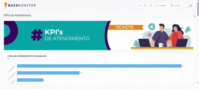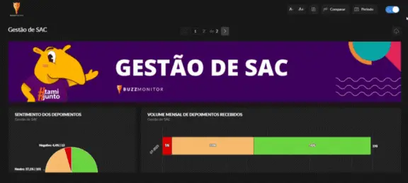 Seja concorrentes, datas comemorativas, campanhas e produtos específicos, produtividade individual dos analistas e muito mais. Inclusive Dashboards unificados de Monitoramento + Atendimento + Analytics em uma mesma visualização.